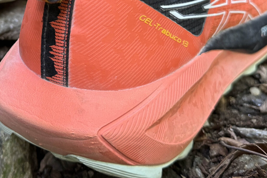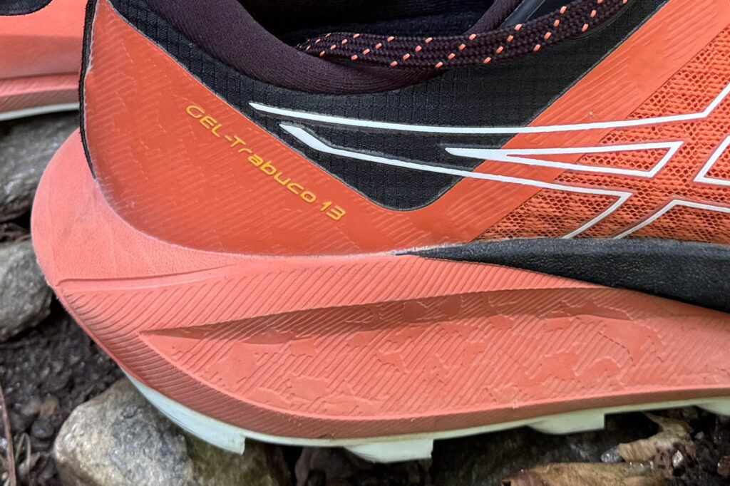 Uno degli elementi che più colpisce della Gel-Trabuco 13 è la suola, che si conferma tra le migliori della categoria grazie alla mescola proprietaria AsicsGrip. La configurazione dei tasselli è piuttosto originale: disposti in due direzioni sia nella zona anteriore che in quella posteriore, garantiscono un’aderenza eccellente su una vasta gamma di superfici. Durante i test, la scarpa ha mostrato prestazioni di alto livello sia su terreni asciutti che bagnati, con una tenuta paragonabile a quella offerta dal celebre Megagrip di Vibram.