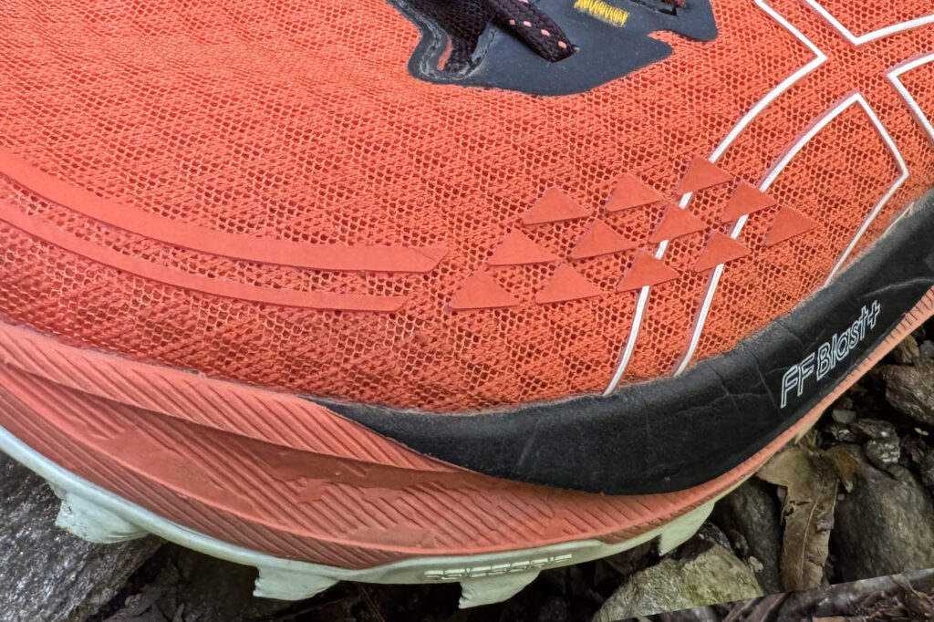 La vera novità tecnica della Trabuco 13 risiede nell’intersuola, che adotta la mescola FF Blast Plus ECO. Con uno spessore di 34 mm nel tallone e 26 mm nell’avampiede, il drop di 8 mm si mantiene in linea con le versioni precedenti, ma la sensazione sotto al piede cambia sensibilmente. L’ammortizzazione è morbida, ma non eccessivamente: una via di mezzo che riesce a soddisfare sia chi cerca comfort nelle lunghe distanze, sia chi desidera una certa reattività durante la corsa.