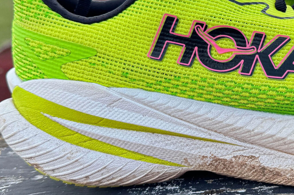 È nella zona del tallone che Hoka ha operato gli interventi più significativi. Uno dei principali difetti segnalati nella Mach X2 riguardava l’eccessiva abrasione causata dalla conchiglia tallonare. Con la Mach X3, il brand ha risolto il problema introducendo una struttura più ricca e protettiva, con un collarino classico dotato di inserti lungo tutto il perimetro e una chiusura posteriore all’altezza del tendine.
