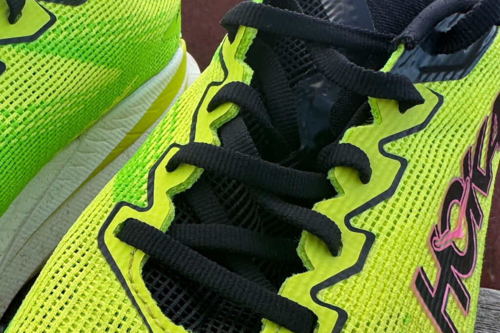 Durante la corsa, non ho mai avvertito fastidi o sfregamenti e il comfort generale è decisamente migliorato. La conchiglia laterale, pur essendo piuttosto cedevole, ricorda quella di una scarpa da gara, contribuendo a mantenere la leggerezza complessiva. La zona dei lacci è rimasta invariata, ma i lacci stessi sono ora più sottili ed elasticizzati, offrendo una calzata più precisa e confortevole.