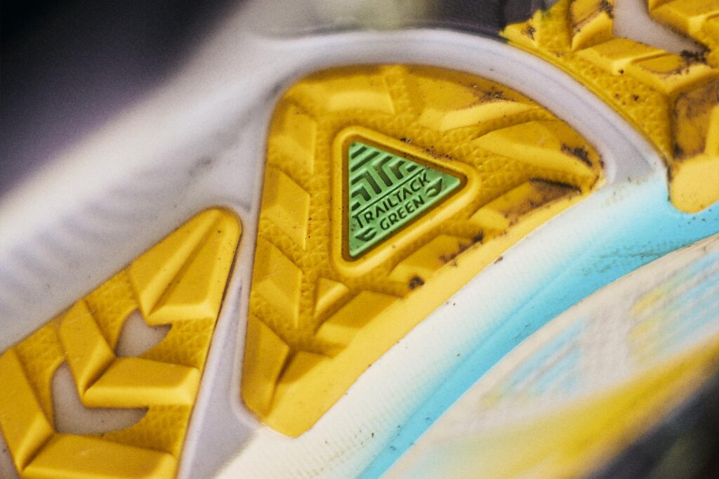 La vera novità “trail” della nuova Ghost, però, è nella suola TrailTack Green, una mescola ecologica che fornisce aderenza su superfici naturali come ghiaia, terra e sterrato. Il disegno della suola è caratterizzato da tasselli ravvicinati da 3 mm, una scelta che permette di mantenere un buon grip senza compromettere la scorrevolezza sull’asfalto.