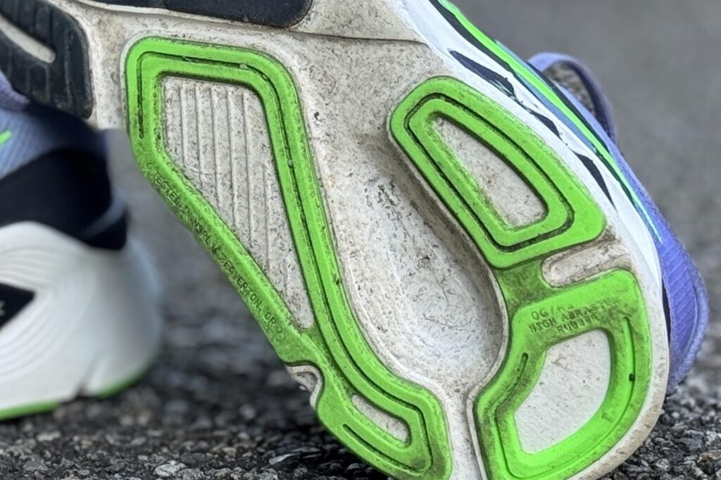 la protezione è uno dei punti di forza di questa scarpa, pensata per soddisfare le esigenze dei runner che cercano una calzatura stabile per le proprie uscite. La differenza con Structure 26 è evidente: entrambe stabilizzano, ma lo fanno in modo molto diverso. Structure 26 utilizza un midfoot support system con inserto in mescola più rigida e un’intersuola che si sviluppa maggiormente in altezza lungo la tomaia. Structure Plus mantiene un inserto mediale, ma basato su ZoomX, molto più morbida rispetto a quella della 26, pur conservando un notevole sviluppo laterale in altezza.