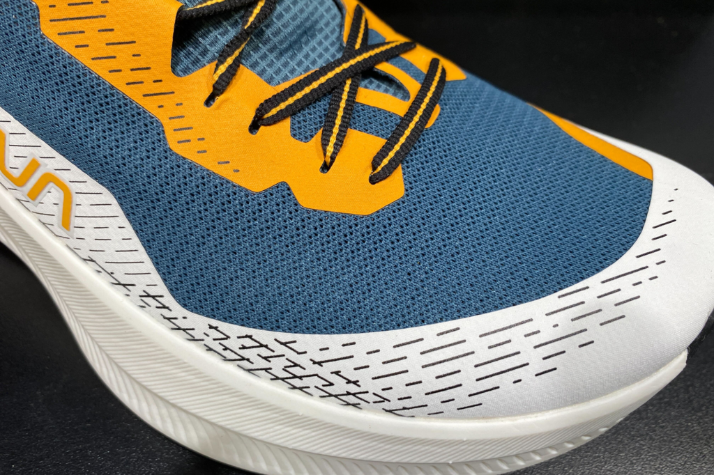 Un’altra innovazione importante di Prodigio Pro è la soletta XFlow, realizzata nello stesso materiale dell’intersuola e abbinata a una costruzione strobel-less, cioè senza la tradizionale strobel board. Questa scelta consente al piede di percepire direttamente il lavoro dell’intersuola, amplificando la sensazione di reattività e il contatto con il terreno.