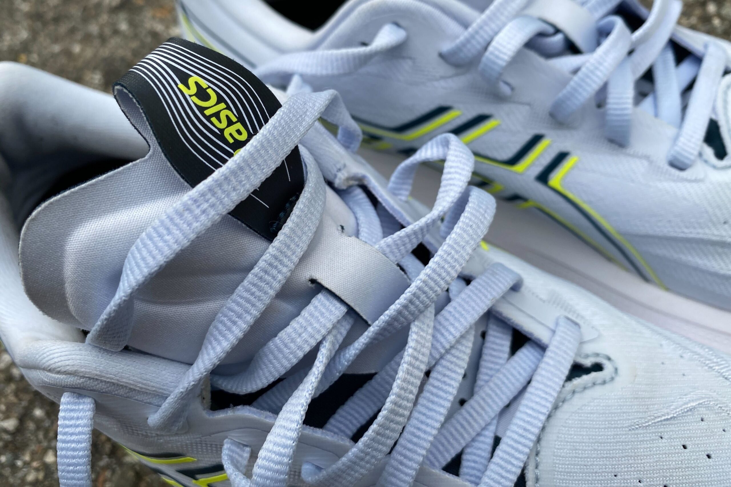 La linguetta é abbastanza minimalista ma ben imbottita e confortevole, con un taglio che richiama altri modelli della casa nipponica come Novablast 5 e Kayano 32: credo che ormai rappresenti un po’ un benchmark per tutti i modelli ASICS.