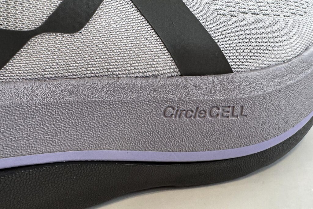 L’intersuola della C1 è a doppia densità: la parte superiore, più morbida e reattiva, utilizza la mescola proprietaria Circle Cell, mentre quella inferiore è realizzata in EVA tradizionale, per garantire maggiore stabilità. Ma la vera innovazione è nella scelta di design: le due piattaforme sono leggermente sfalsate, con un angolo di rotazione di circa 7°. Questo accorgimento aumenta la base d’appoggio e ne migliora la stabilità, un aspetto decisivo per scarpe voluminose prive di piastra.