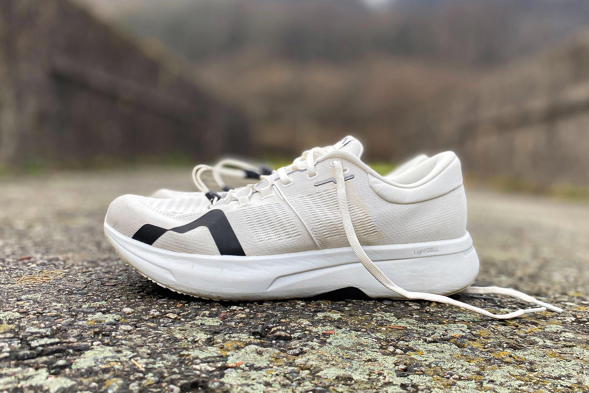 La mescola proprietaria LightCELL, sviluppata dall’azienda di Hong Kong, è una schiuma supercritica arricchita con azoto: risulta il 50% più leggera rispetto a una tradizionale Eva, ma garantisce un ritorno di energia superiore del 45%. L’effetto al piede è una risposta secca ma molto stabile, qualità che torna utile nelle ultra quando inevitabilmente la tecnica tende a cedere.