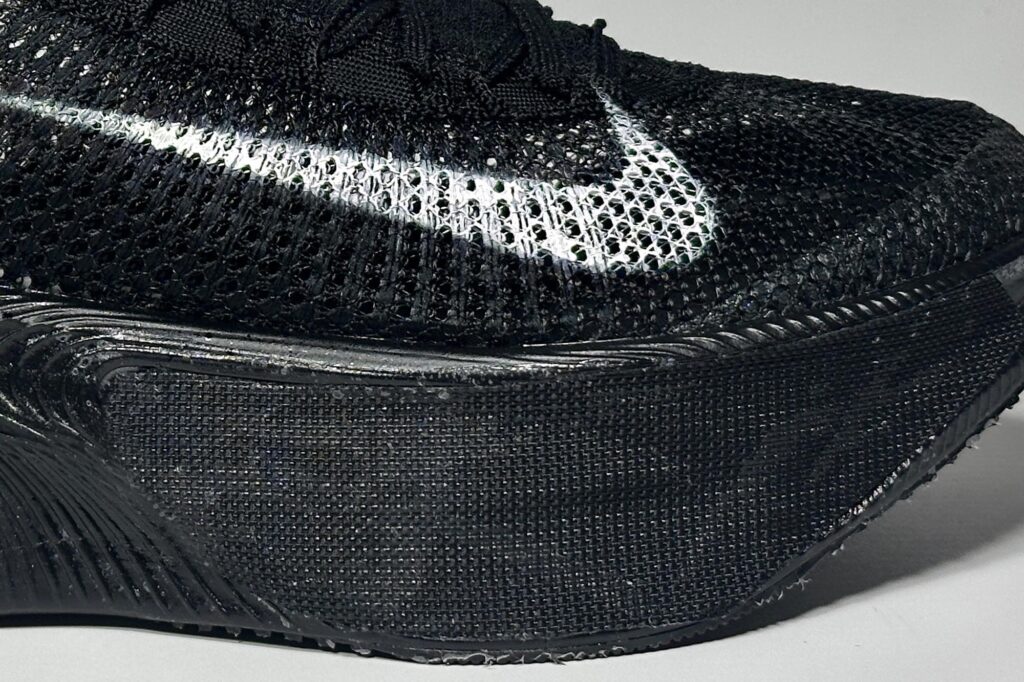 Un cambiamento rilevante – anche se volutamente nascosto – riguarda il sistema propulsivo Air Zoom. La zona frontale è coperta da un nastro nero che maschera la nuova configurazione, segno evidente che Nike vuole proteggere i propri segreti fino all’ultimo. È quasi certo che le unità ZoomAir siano ancora presenti, come già emerso nel primo prototipo, ma la scelta di camuffarle suggerisce qualche novità interessante: dimensioni riviste? Una struttura meno fastidiosa, come richiesto da molti runner che lamentavano il “rumore” caratteristico delle Alphafly? Le ipotesi non mancano.