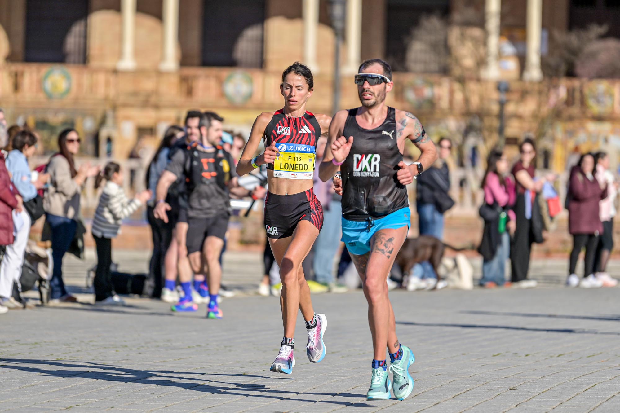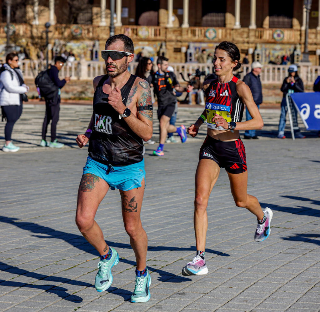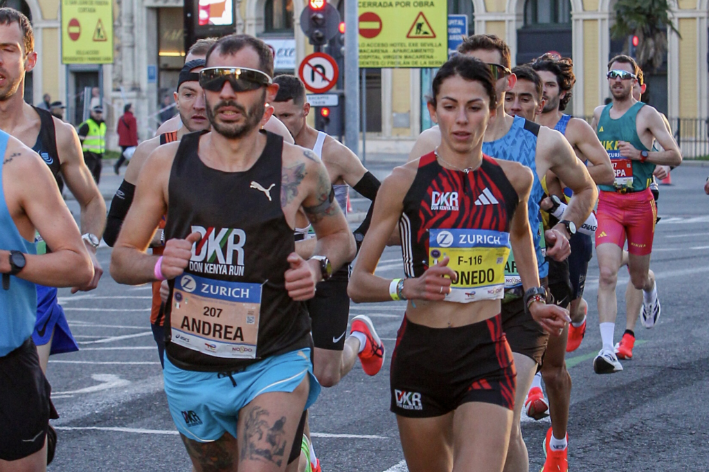 Rebecca Lonedo e Andrea Soffientini alla maratona di Siviglia 2026 (foto Canofotosports)