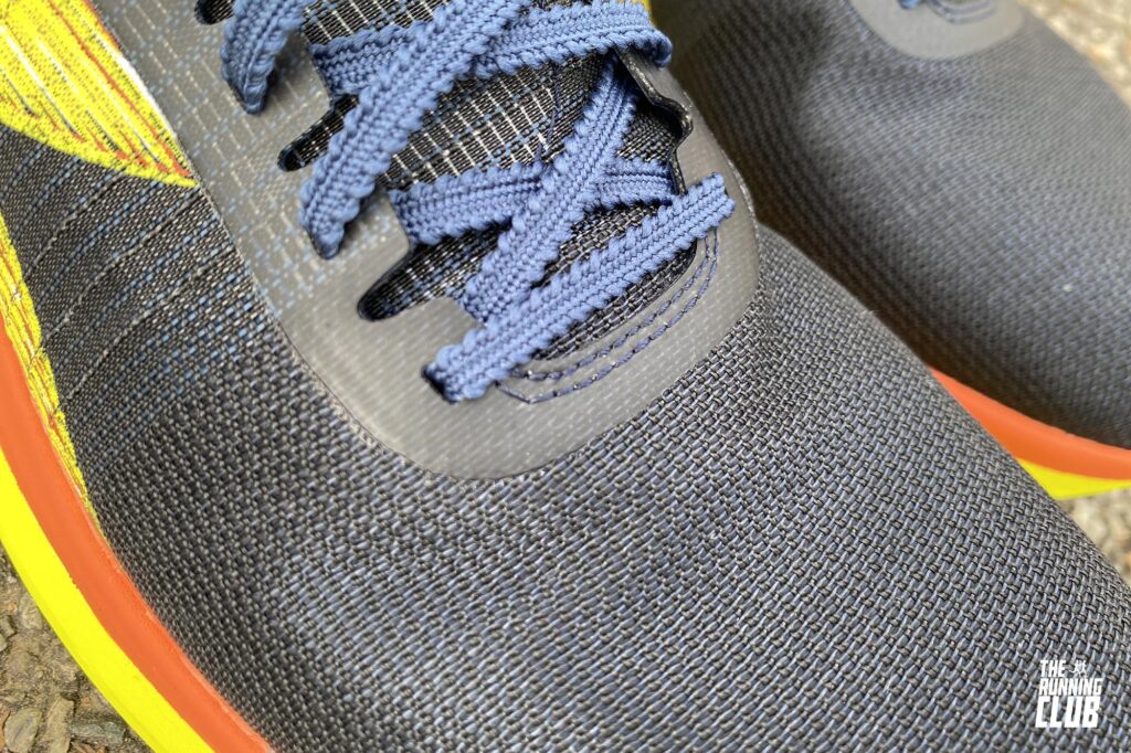 La tomaia in Matrix con filamenti in carbonio prosegue nel solco del modello precedente, ma introduce modifiche tutt’altro che marginali. Scompaiono gli inserti in PU e l’avampiede risulta ora più ampio, consentendo alle dita di muoversi con maggiore libertà. Un dettaglio che migliora sensibilmente il comfort, soprattutto sulle distanze più lunghe, senza compromettere la sensazione di precisione tipica di una scarpa da gara.
