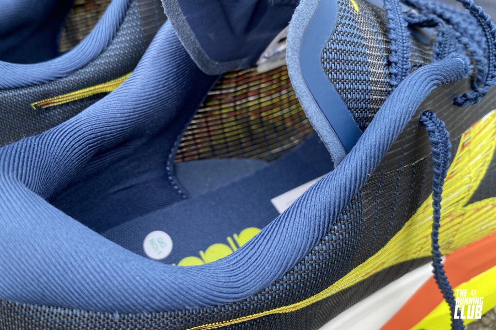 Per quanto riguarda l’upper, la zona del tallone è stata rivista con un’imbottitura più generosa e una conchiglia irrigidita, pensata per aumentare la stabilità e il controllo del piede. Il collare resta ben imbottito, in linea con la versione precedente, mentre i lacci mantengono un’impostazione racing.