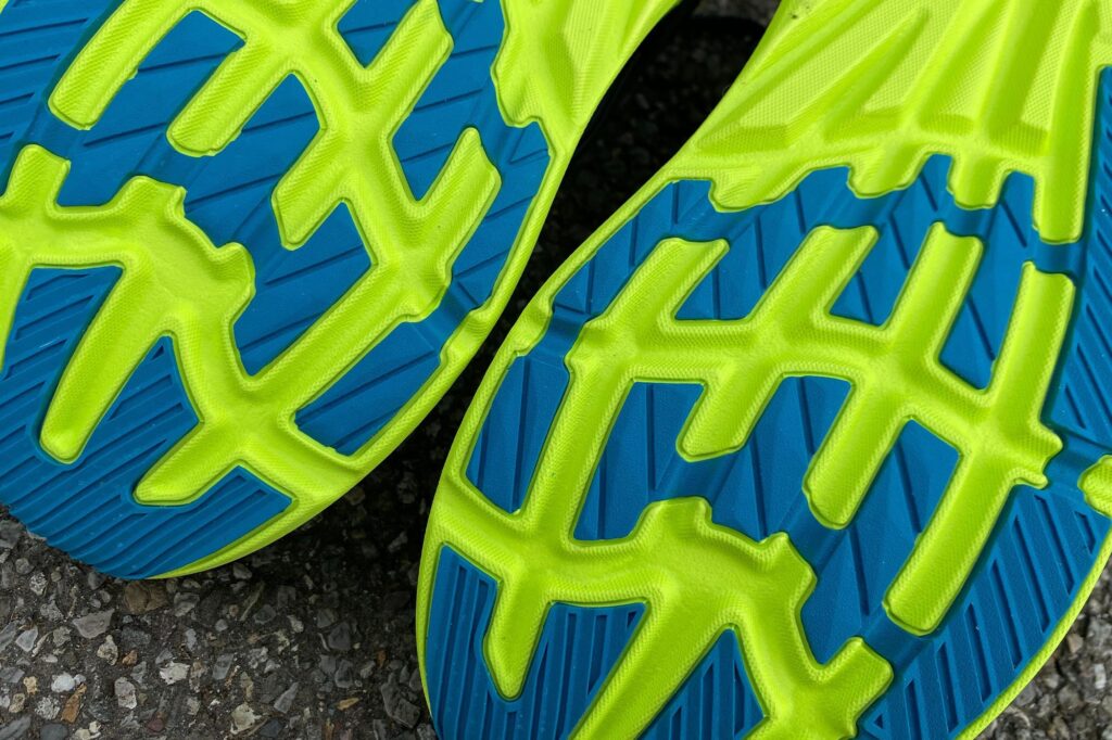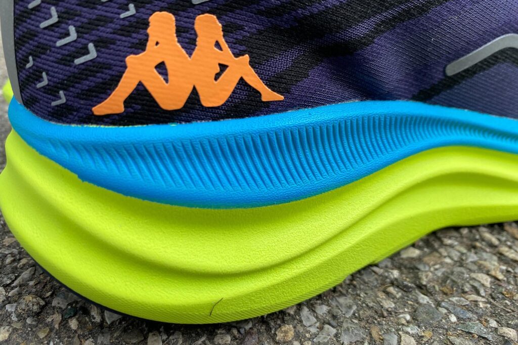 Molto interessante la costruzione laterale dell’intersuola: le pareti laterali salgono a contenere il piede, creando una sorta di “conchiglia” che aumenta la sensazione di sicurezza e riduce i possibili cedimenti, soprattutto nei momenti di stanchezza o in presenza di una tecnica di corsa non perfettamente centrata. La piattaforma, piuttosto larga soprattutto al tallone, contribuisce ulteriormente alla sensazione di stabilità generale.